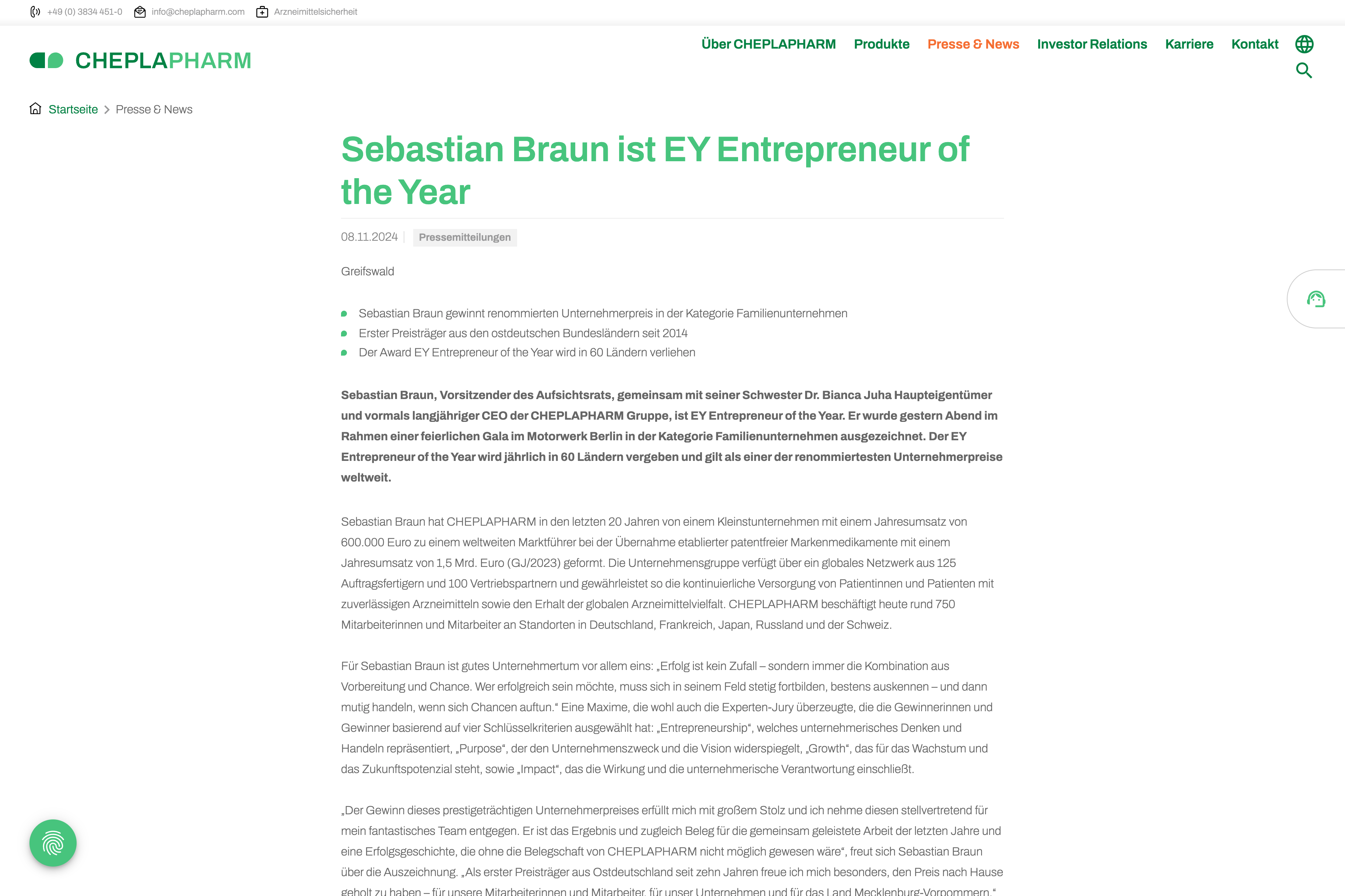 Diese Strategie beschert CHEPLAPHARM ein anhaltendes Wachstum: Zu Beginn unserer Zusammenarbeit im Jahr 2021 hatte das Unternehmen mit 1,1 Mrd. Euro gerade den höchsten Umsatz in seiner Firmengeschichte erzielt. Inzwischen liegt er bei über 1,5 Mrd. Euro. In der Kommunikation mit den Stakeholdern kommt der Corporate Website eine zentrale Rolle zu.